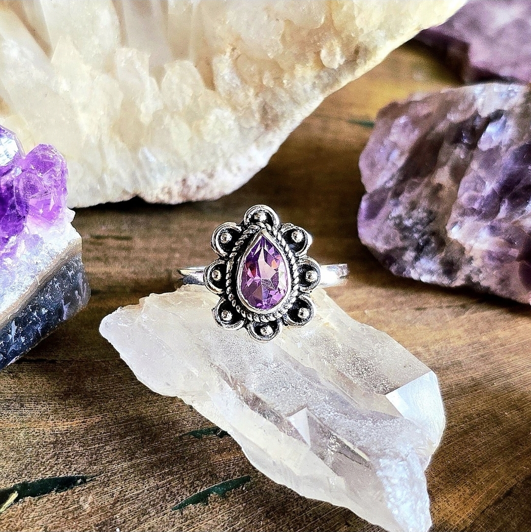 Ametista: É uma pedra extremamente poderosa e protetora, com uma vibração altamente espiritual. Ela nos protege contra ataques psíquicos, transmutando a energia em amor. Calmante natural, bloqueia o estresse geo pático e as energias negativas do ambiente. A sua serenidade favorece a meditação e estados de consciência mais elevados. Tem um forte poder de cura e purificação, além de aguçar a percepção espiritual.