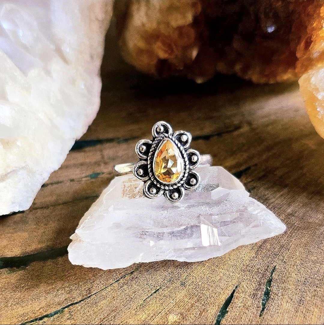 Anel Balinês Gota em Prata 925 e Citrino