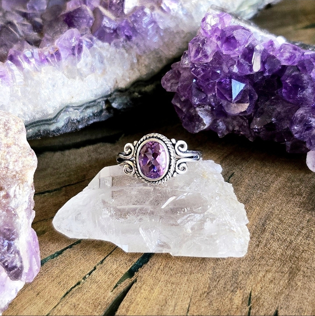 Ametista: É uma pedra extremamente poderosa e protetora, com uma vibração altamente espiritual. Ela nos protege contra ataques psíquicos, transmutando a energia em amor. Calmante natural, bloqueia o estresse geo pático e as energias negativas do ambiente. A sua serenidade favorece a meditação e estados de consciência mais elevados. Tem um forte poder de cura e purificação, além de aguçar a percepção espiritual.