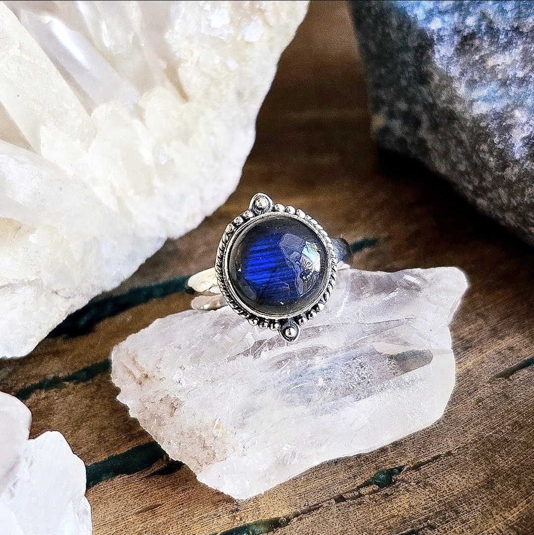 Alinha os corpos físico e etérico e nos ajuda a descobrir o nosso propósito espiritual. Essa pedra estimula a intuição e os dons psíquicos, incluindo a arte de trazer à tona mensagens da mente inconsciente, e facilitar sua compreensão. Do ponto de vista psicológico, a labradorita combate o medo, inseguranças e os resíduos psíquicos deixados por decepções, incluindo aquelas ocorridas em vidas passadas. Ela fortalece a fé no eu e a confiança no Universo.