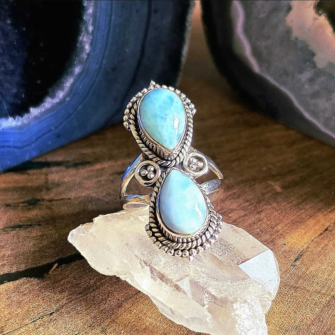 Anel Boho em Prata 925 e Larimar