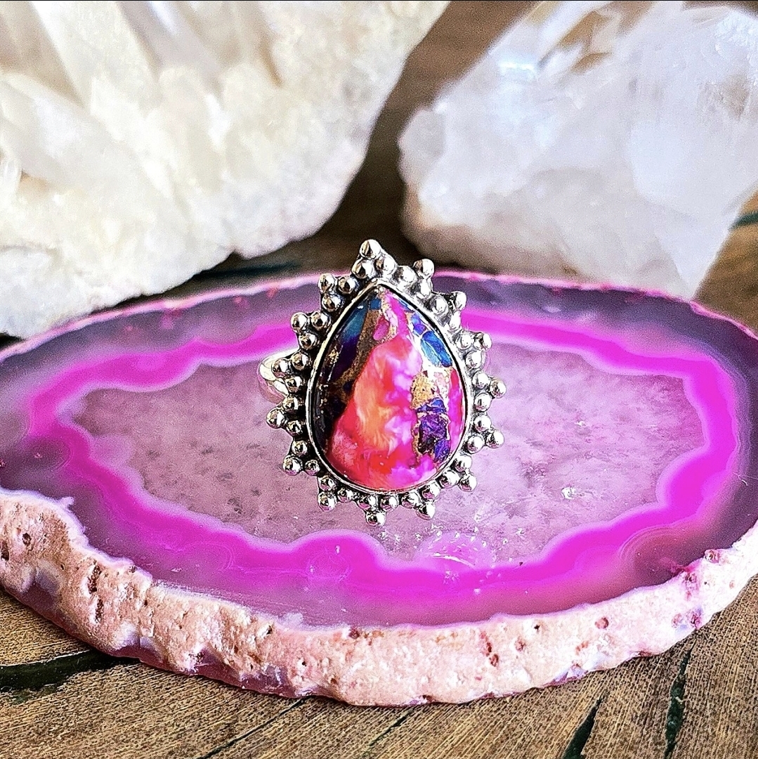 Anel Boho Gota em Prata 925 e Turquesa Ostra