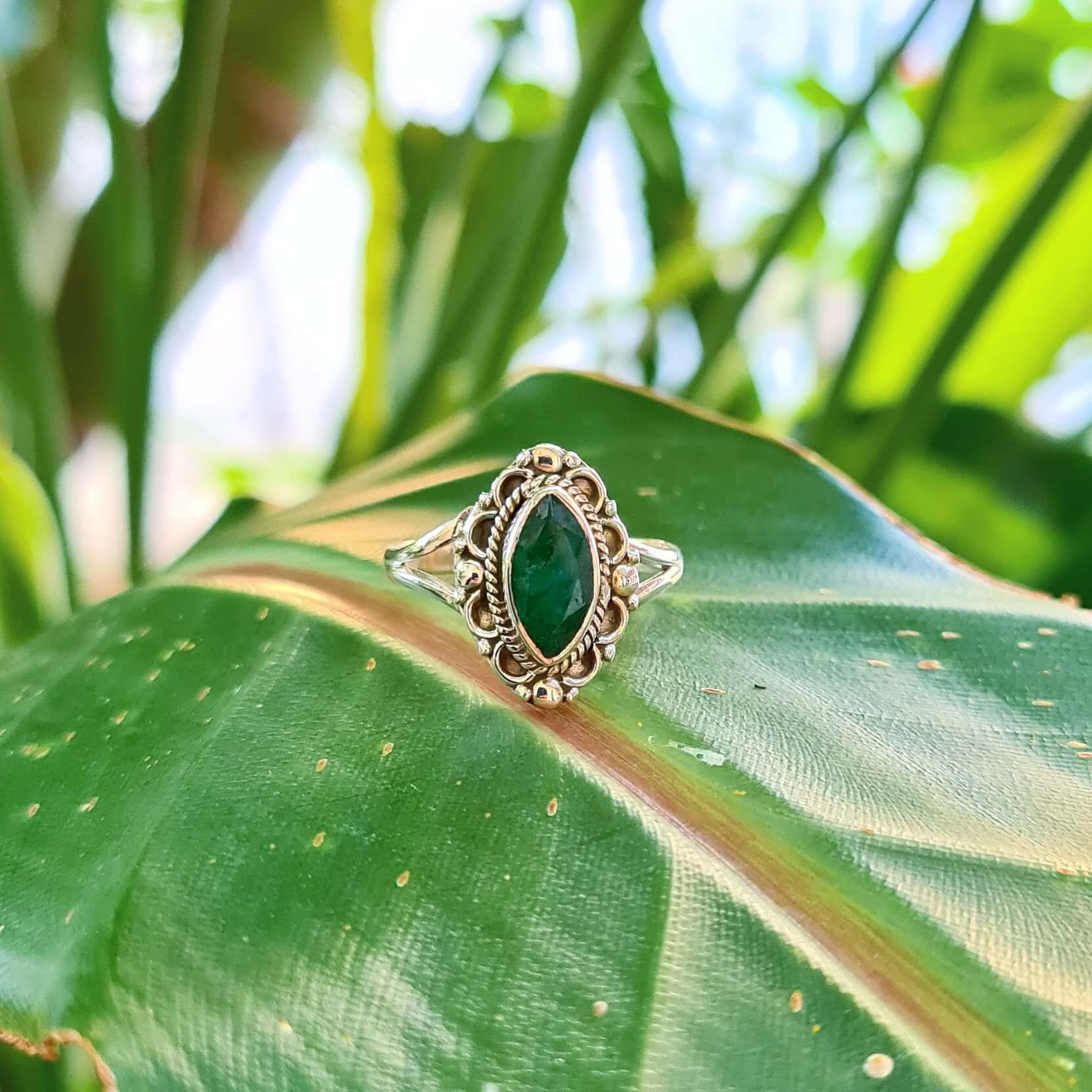 Anel em Prata 925 e Esmeralda