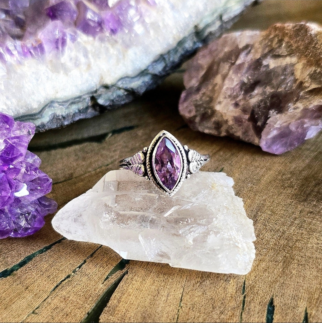 Anel Folhas em Prata 925 e Ametista