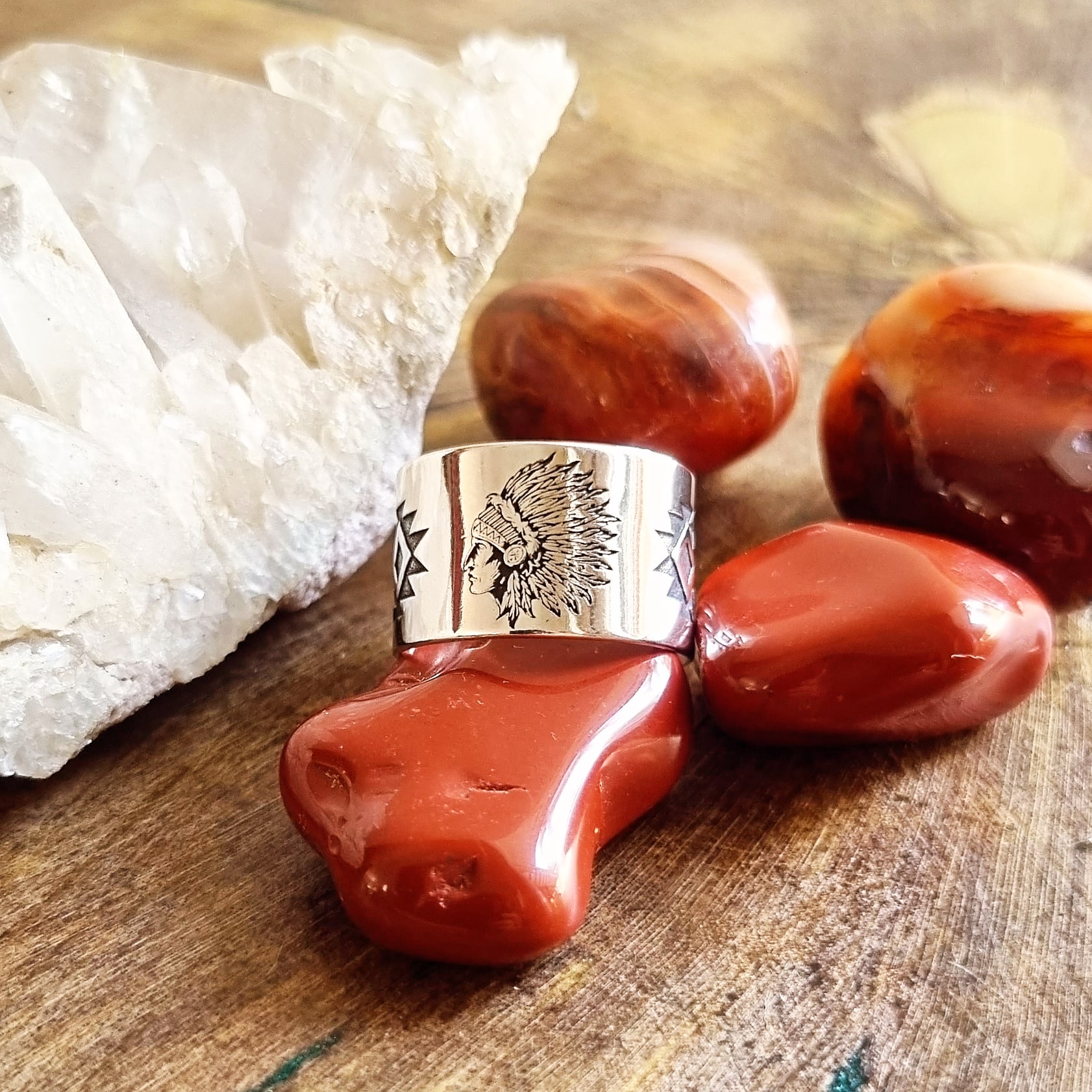 Anel Largo Índio Americano em Prata 925