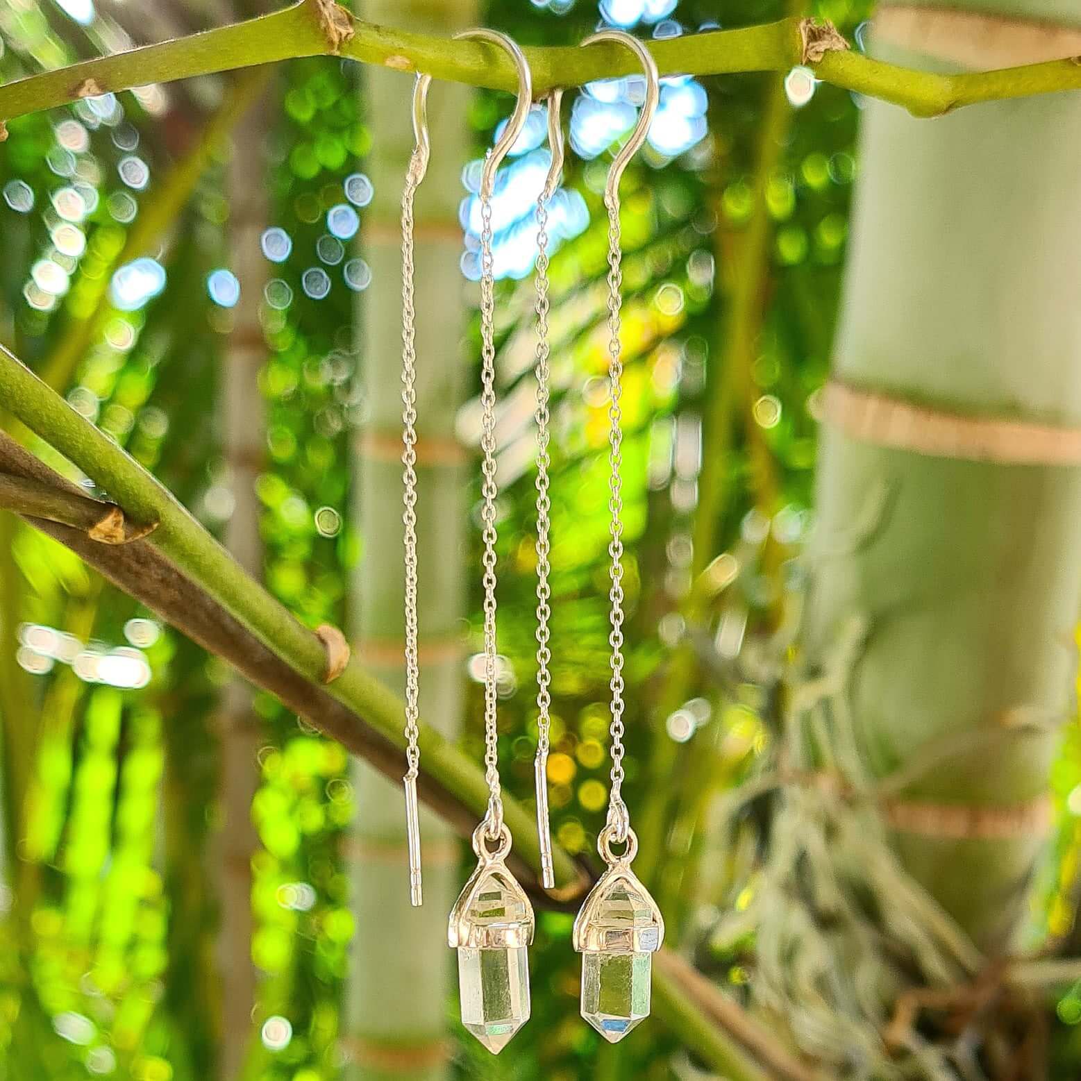 Brinco Fio Grande em Prata 925 e Cristal de Quartzo