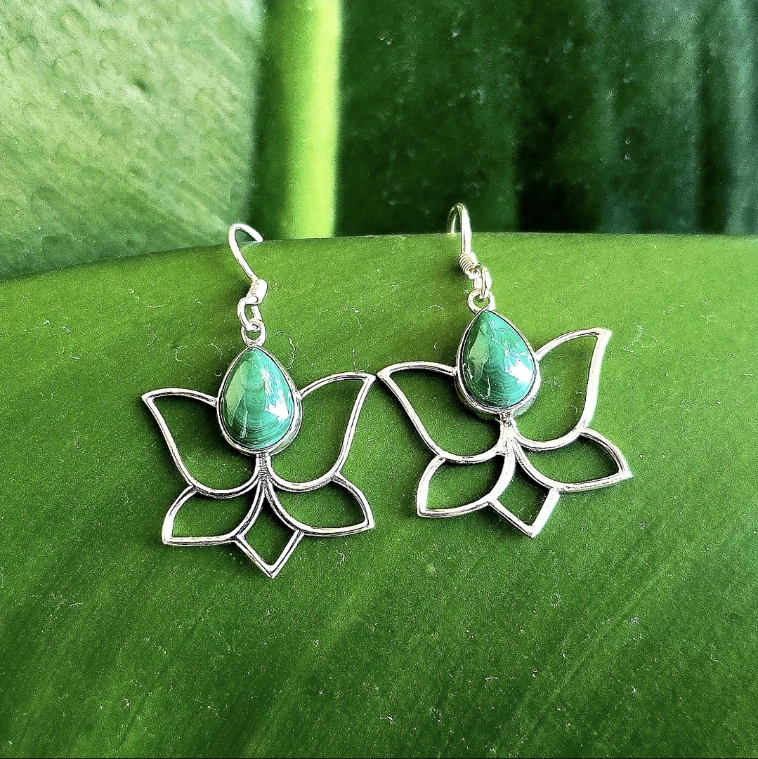 Brinco Flor de Lótus em Prata 925 e Malaquita