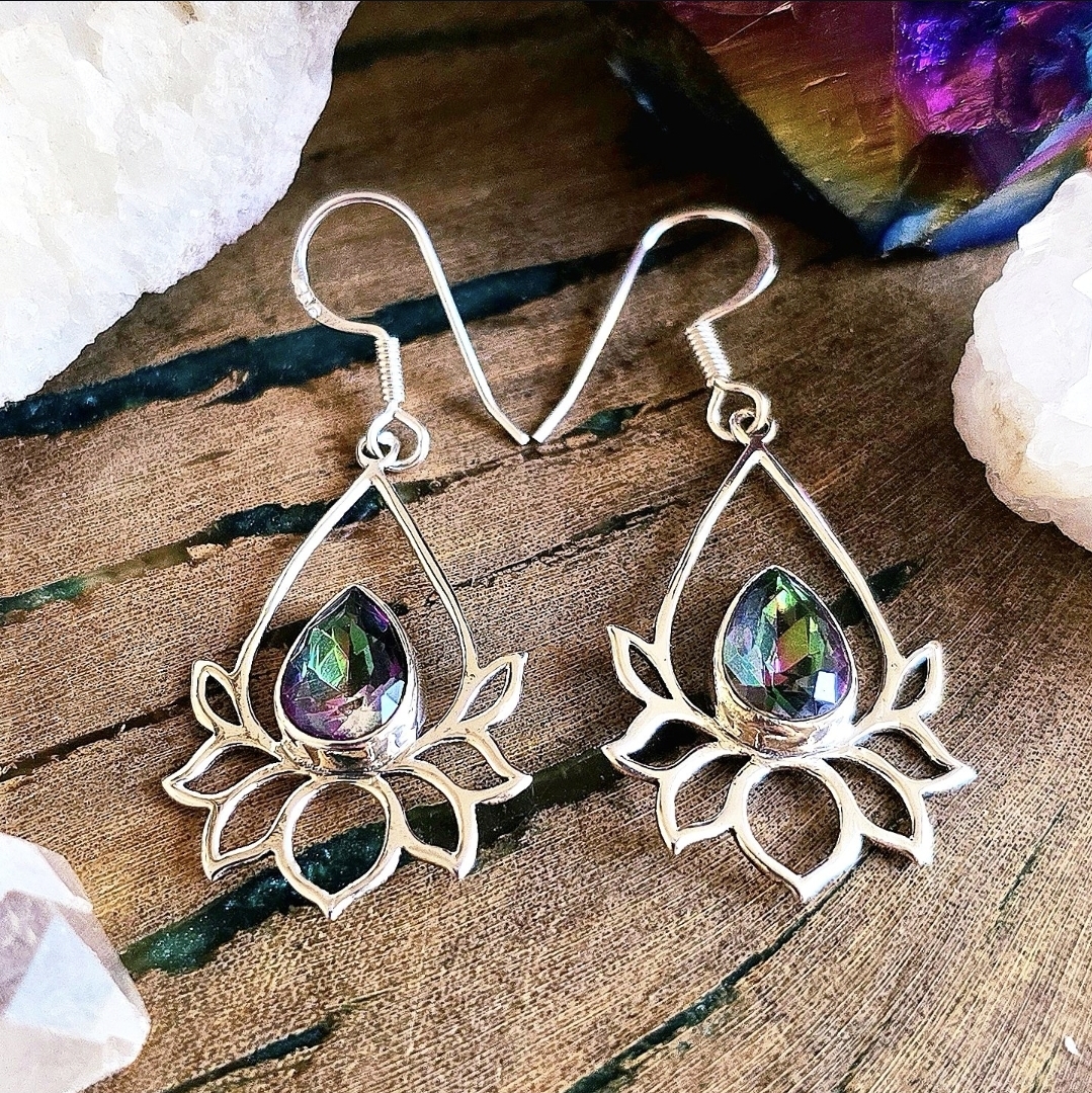Brinco Flor de Lótus em Prata 925 e Topázio Místico