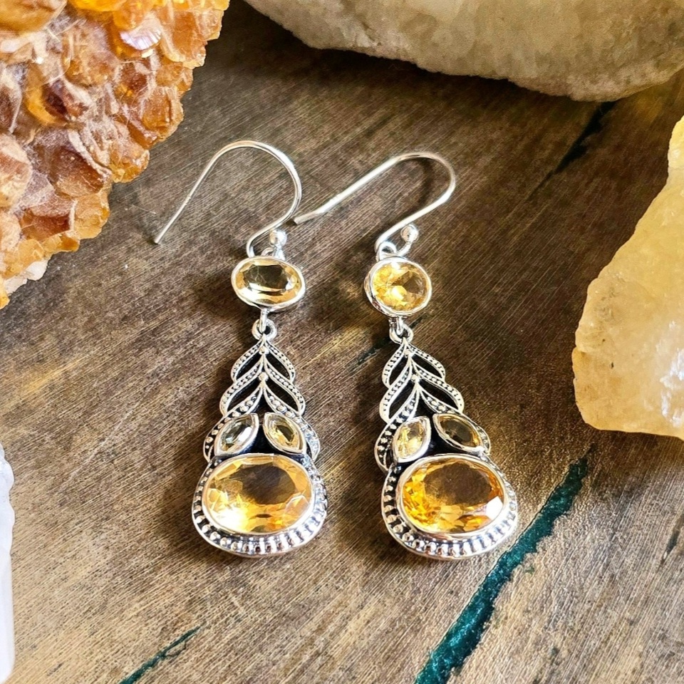 Brinco Folha em Prata 925 e Citrino