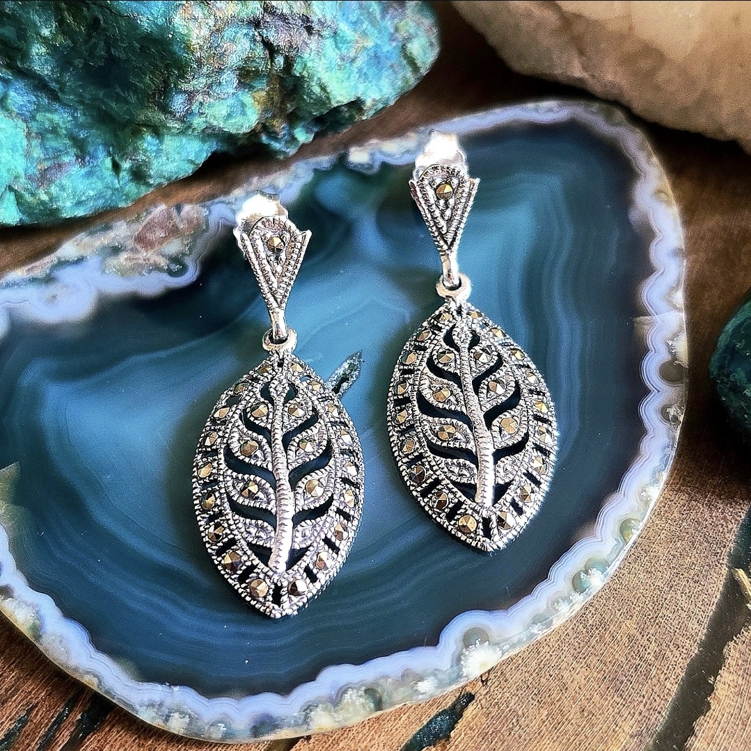 Brinco Folha em Prata 925 e Marcassita