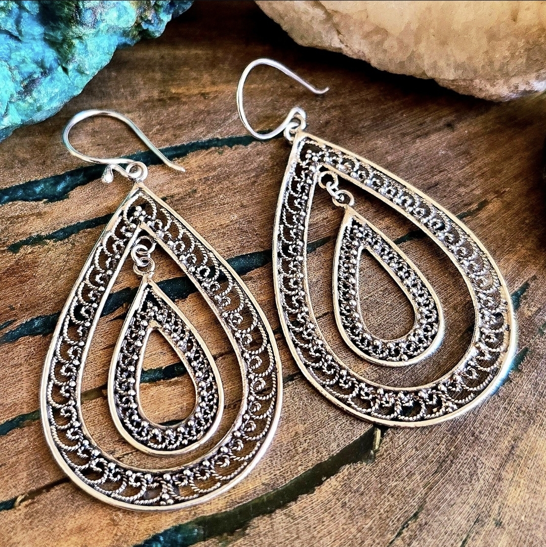 Brinco Gota Filigrana em Prata 925
