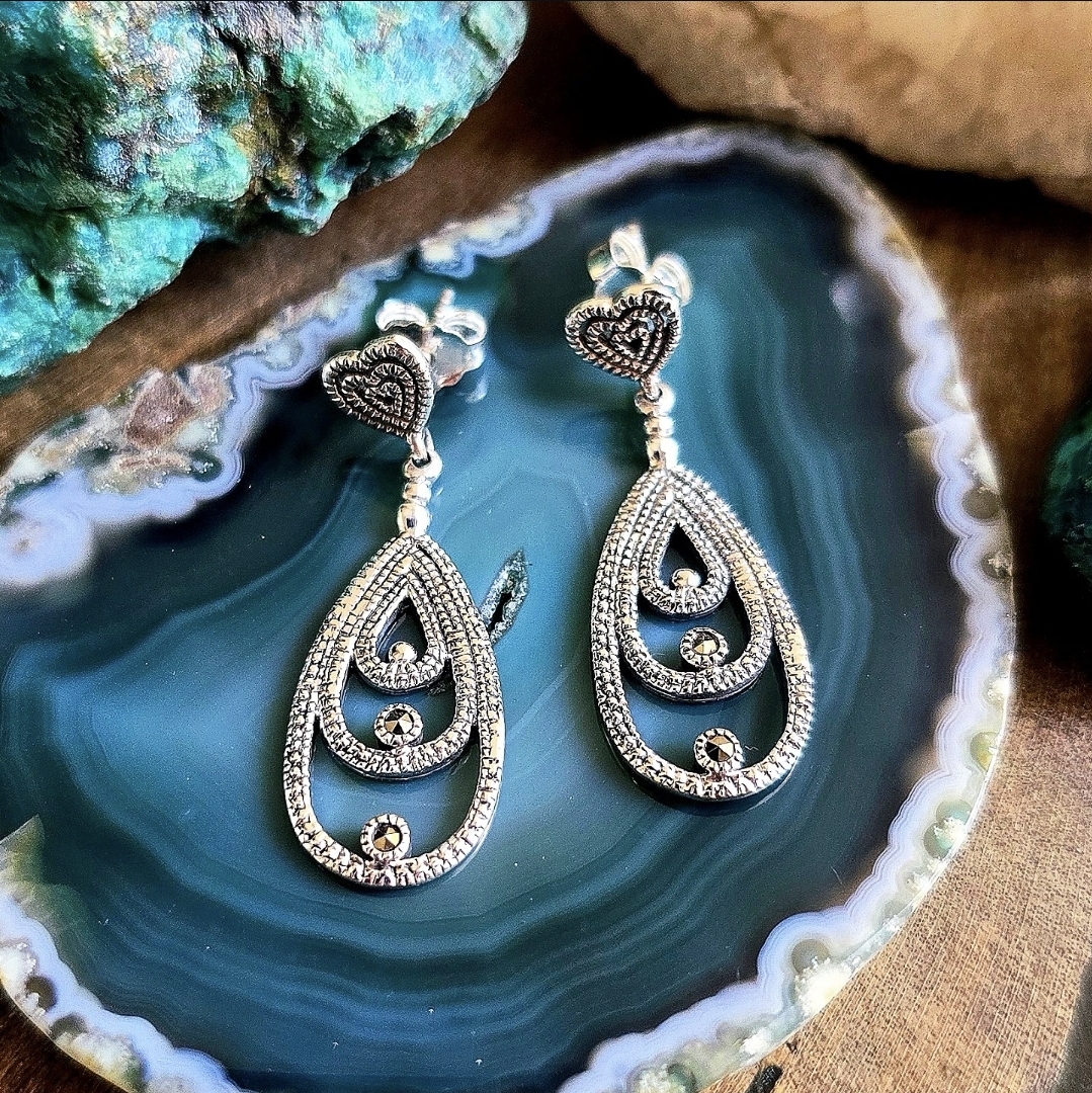 Brinco Gota Vazada em Prata 925 e Marcassita