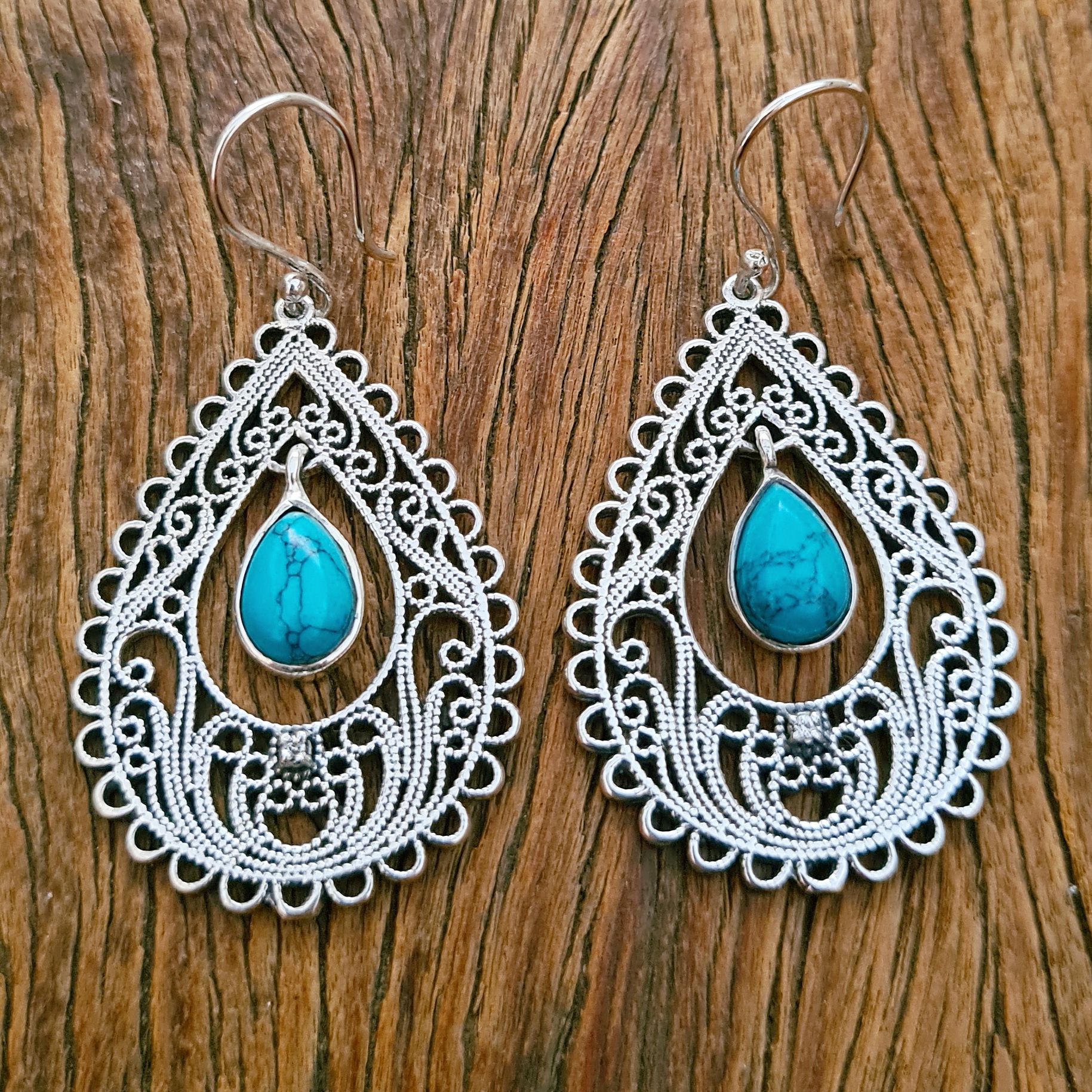 Brinco Grande em Prata 925 e Howlita tingida de Turquesa