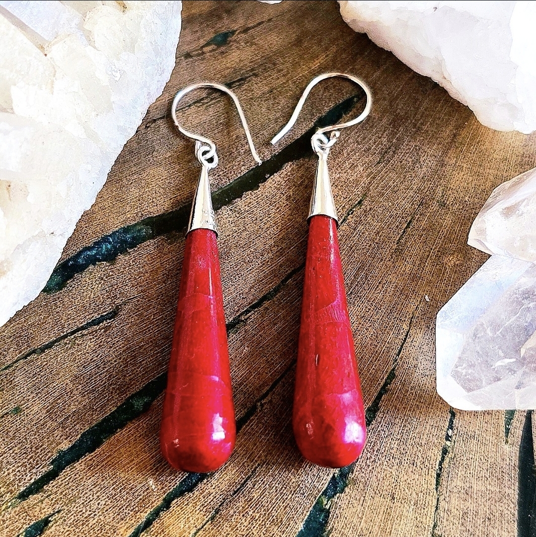 Brinco Médio em Prata 925 e Coral Sintético