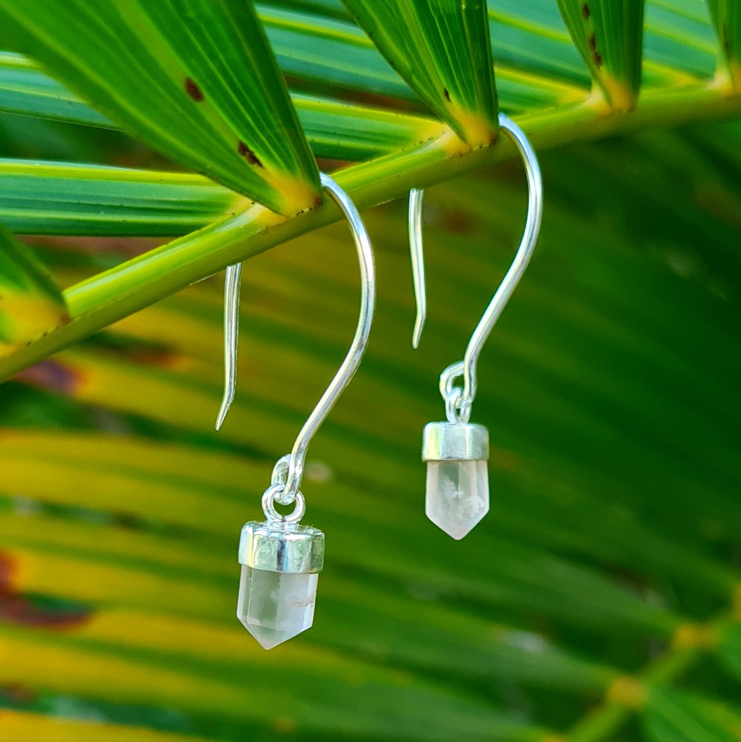 Brinco Médio em Prata 925 e Quartzo Rosa de Ponta