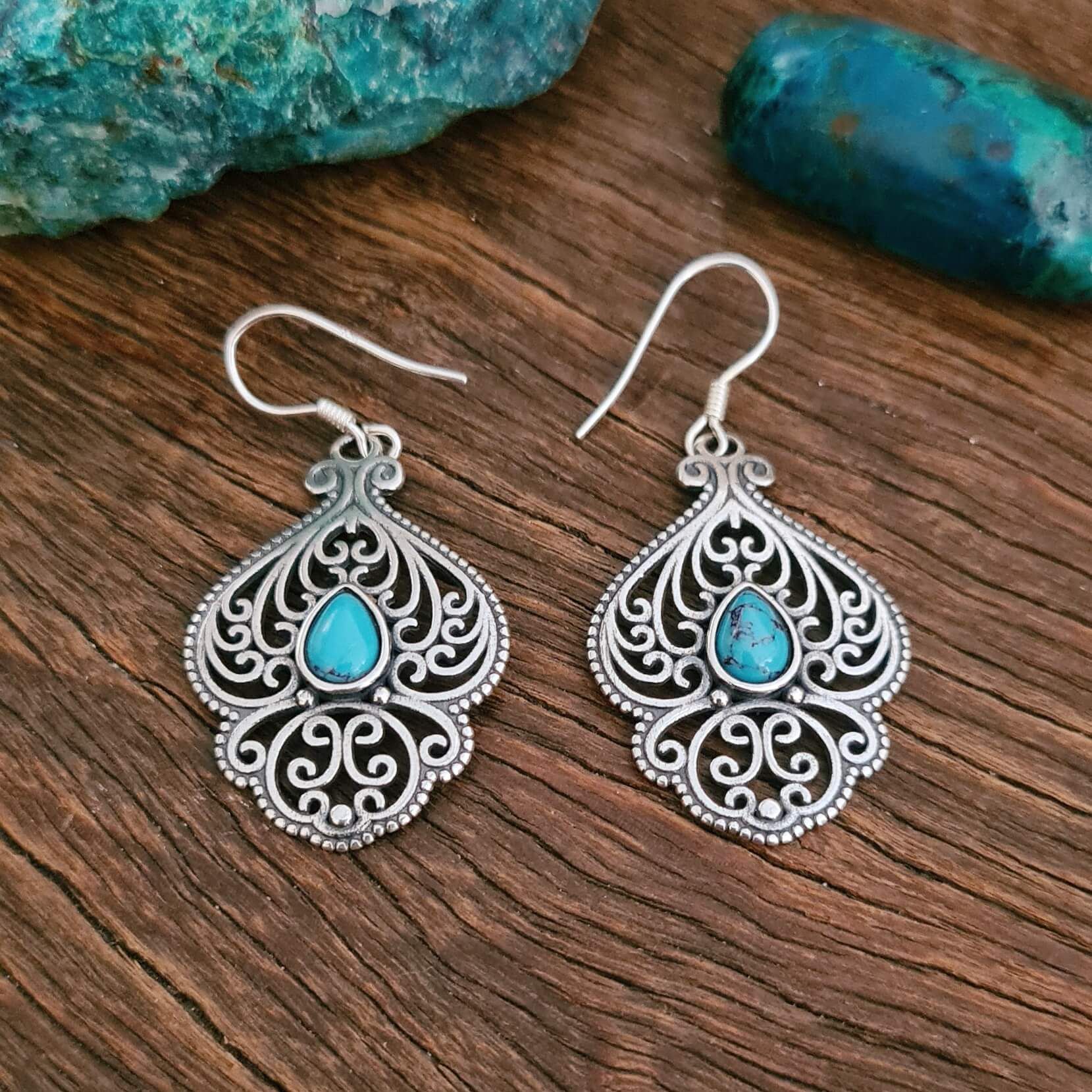 Brinco Médio em Prata 925 e Turquesa Sintética