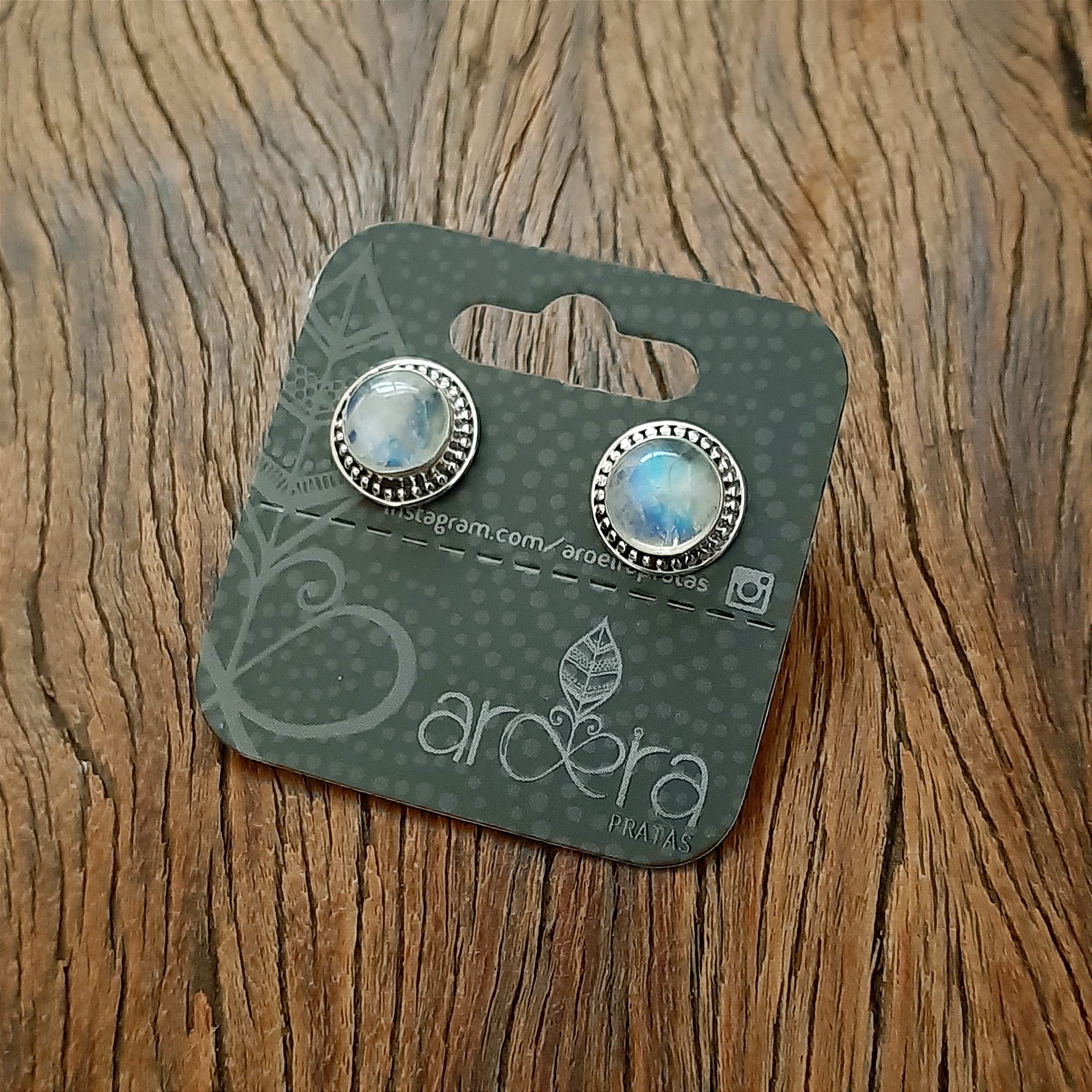 Brinco Pequeno em Prata 925 e Pedra da Lua