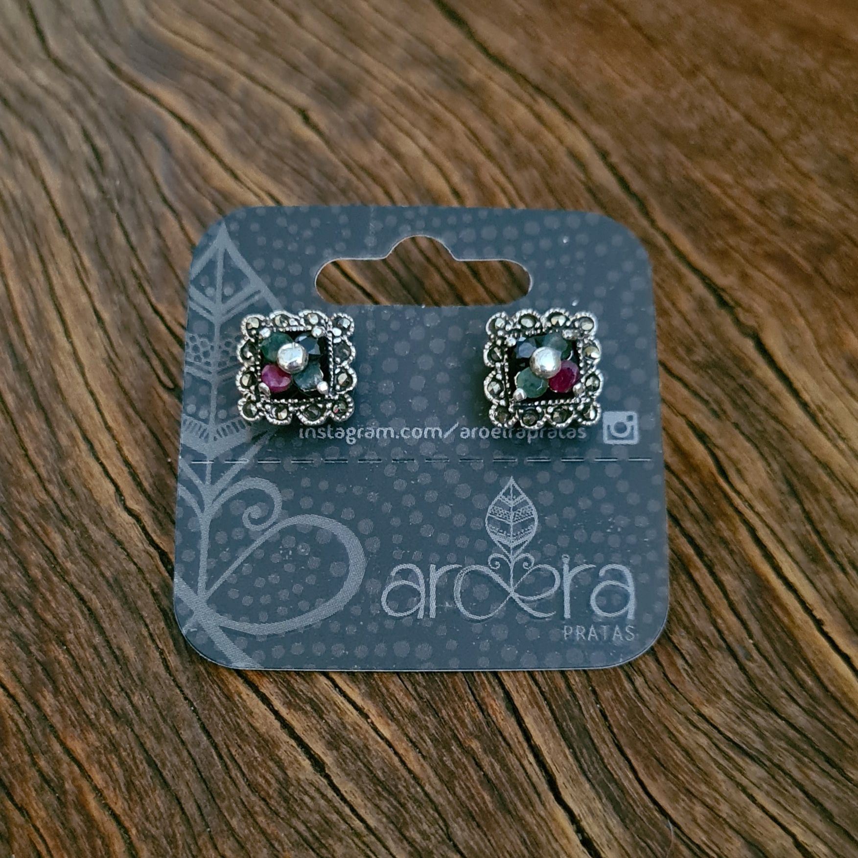 Brinco Pequeno em Prata 925, Rubi, Safira, Esmeralda e Marcassita
