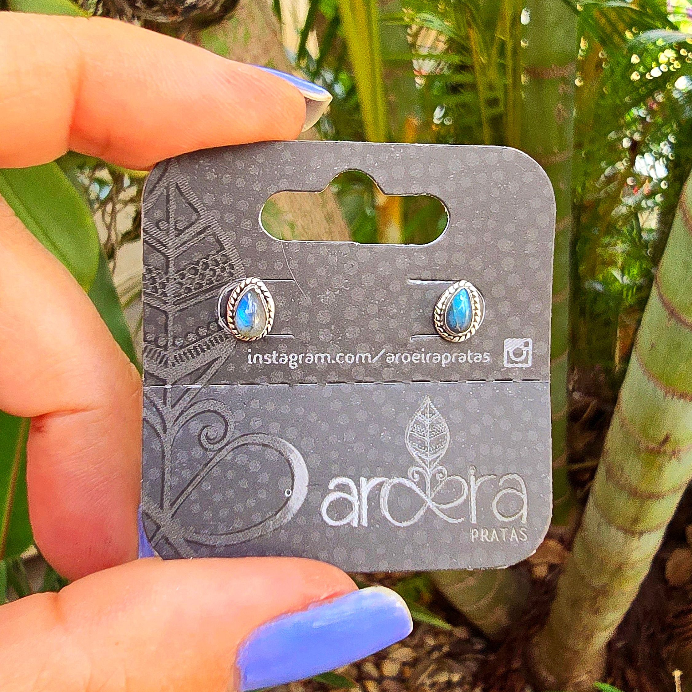 Brinco Pequeno Gota em Prata 925 e Labradorita