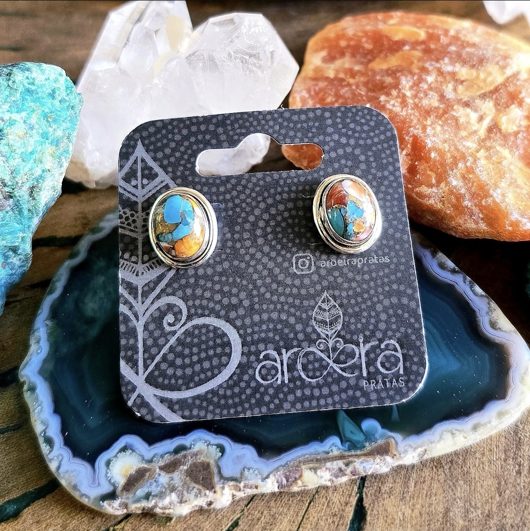 Brinco Pequeno Oval em Prata 925 e Turquesa Ostra