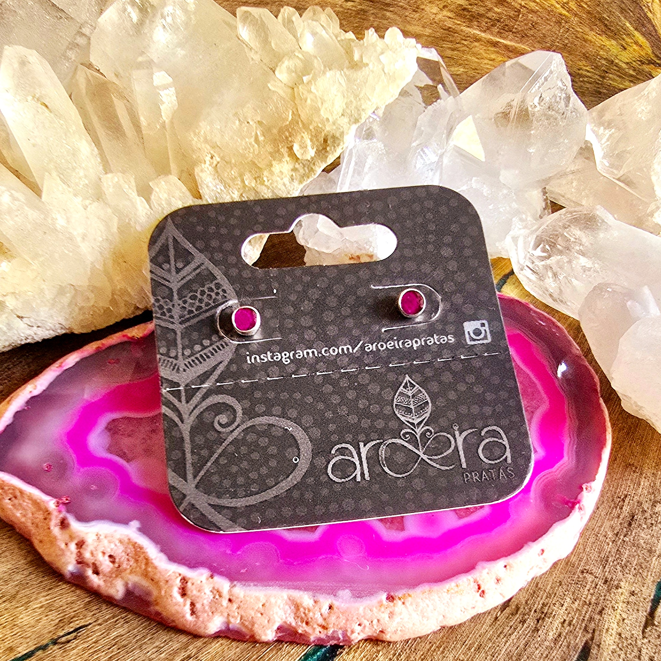 Brinco Pequeno Redondo em Prata 925 e Rubi