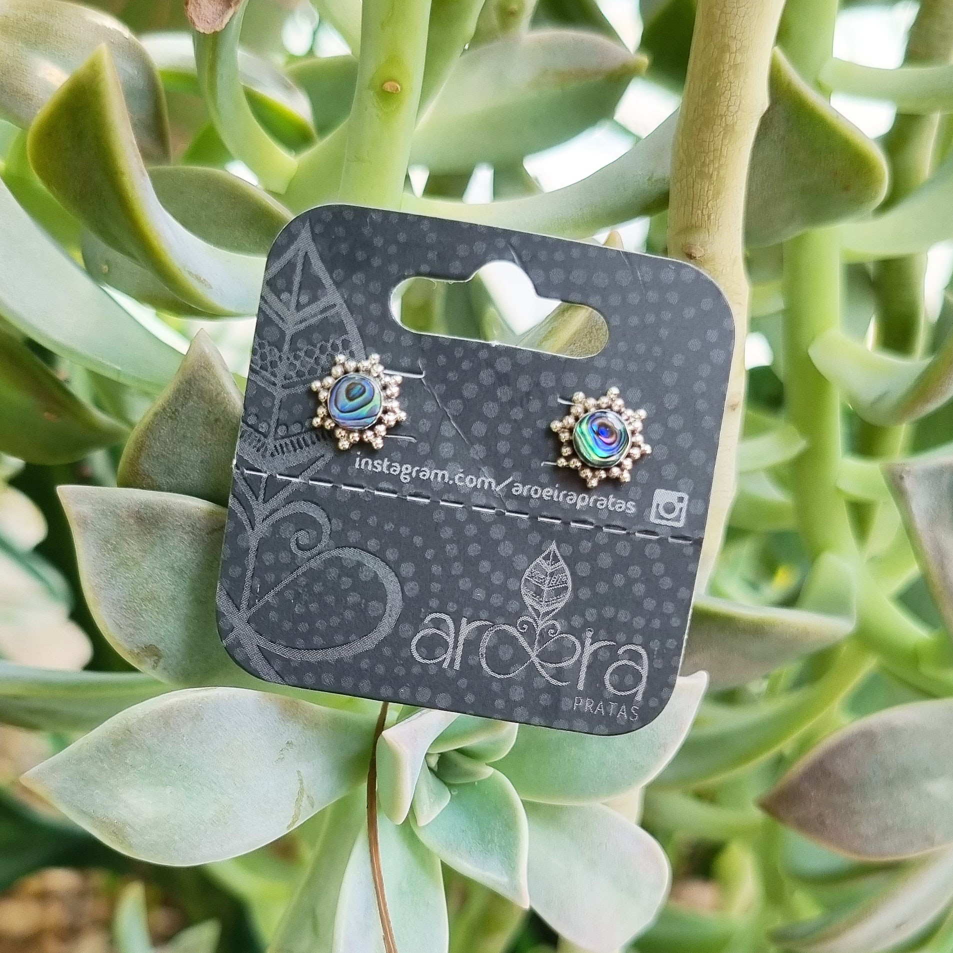 Brinco Pequeno Sol em Prata 925 e Abalone
