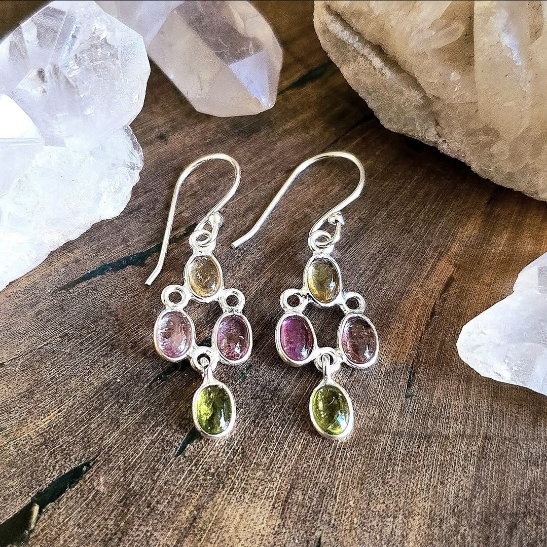 Brinco Vazado em Prata 925 e Turmalina Melancia