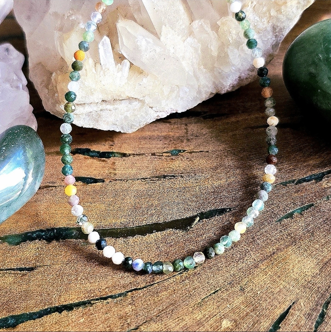 Choker em Prata 925 e Ágata Musgo
