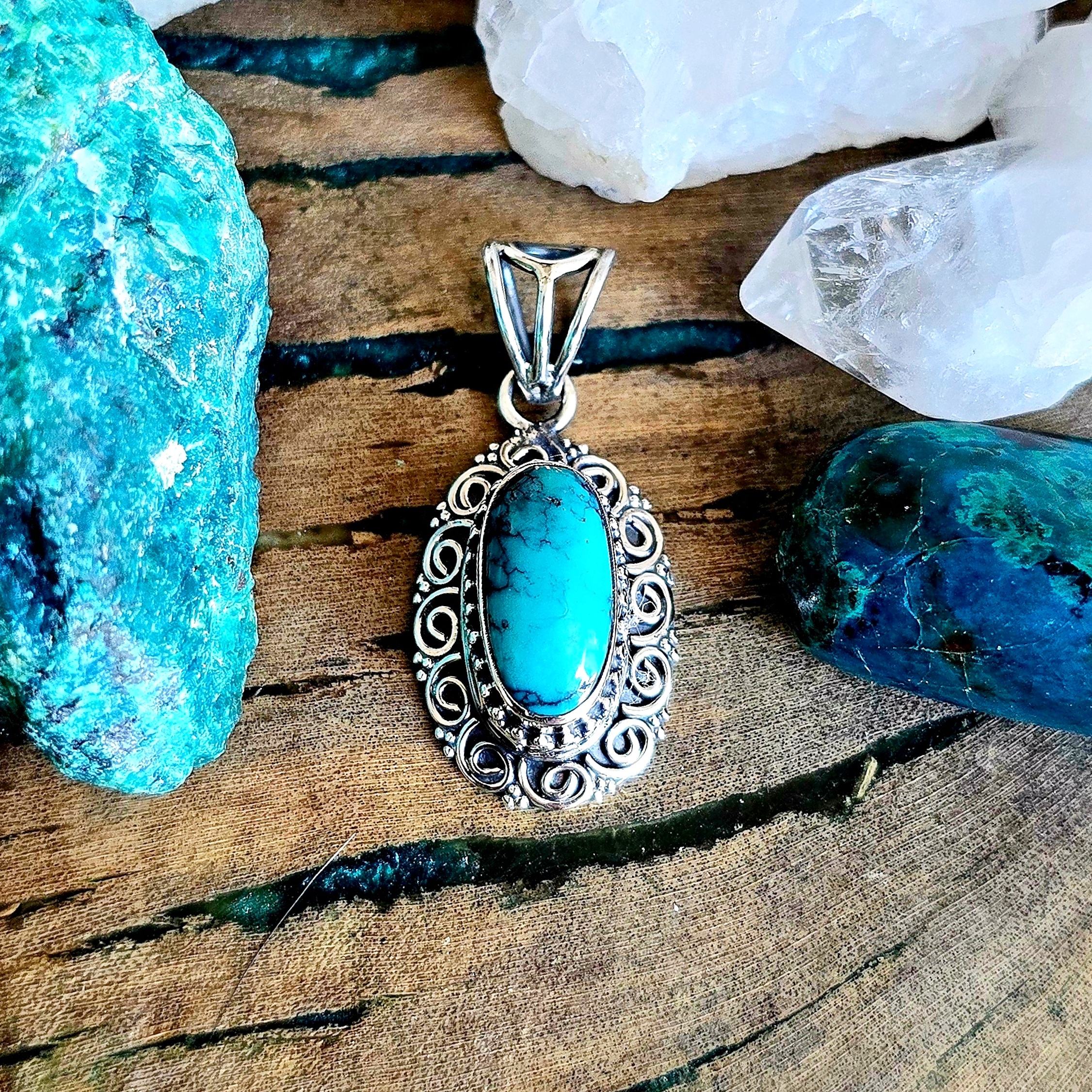 Pingente Balinês Caixa Alta em Prata 925 e Turquesa Natural