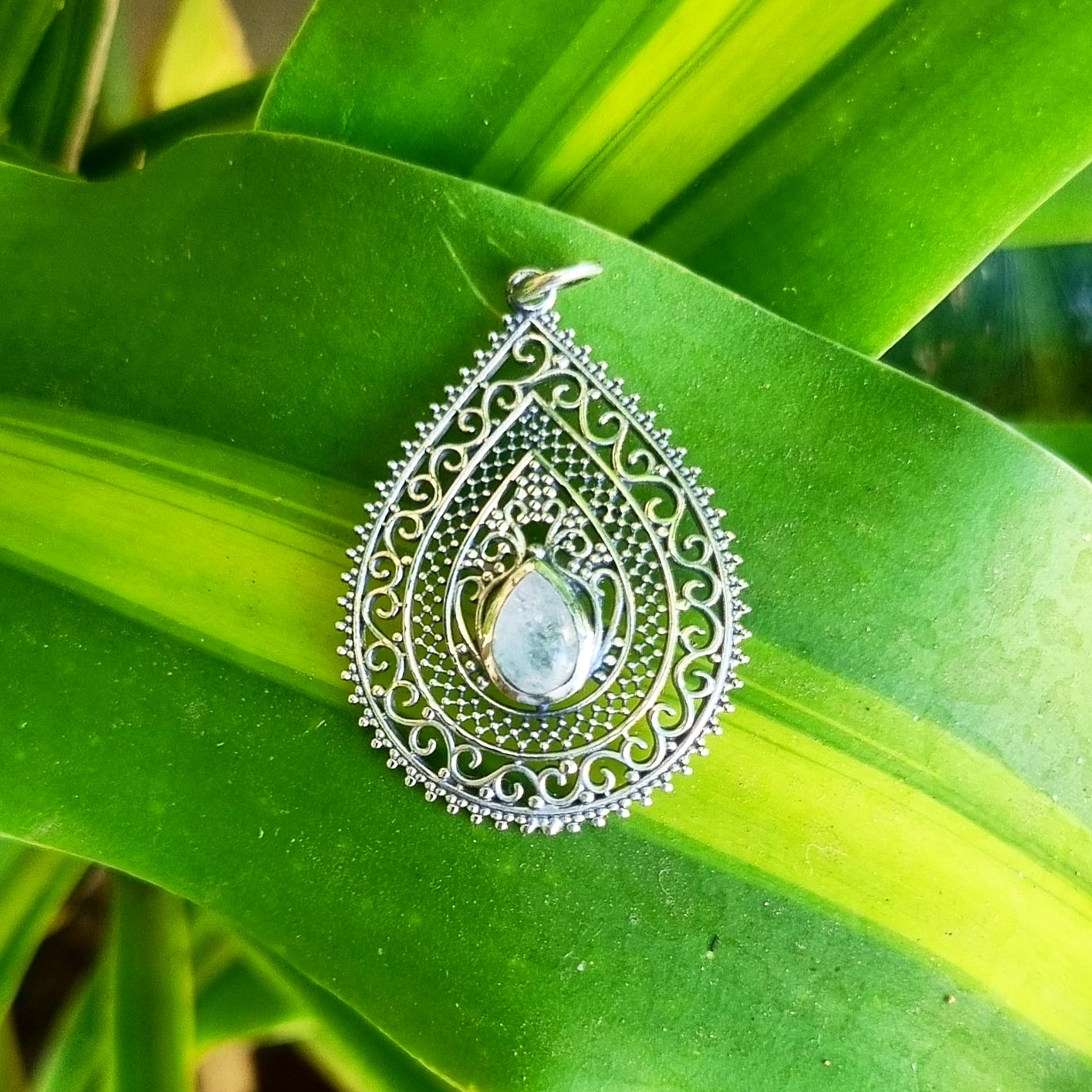 Pingente Balinês Gota em Prata 925 e Pedra da Lua