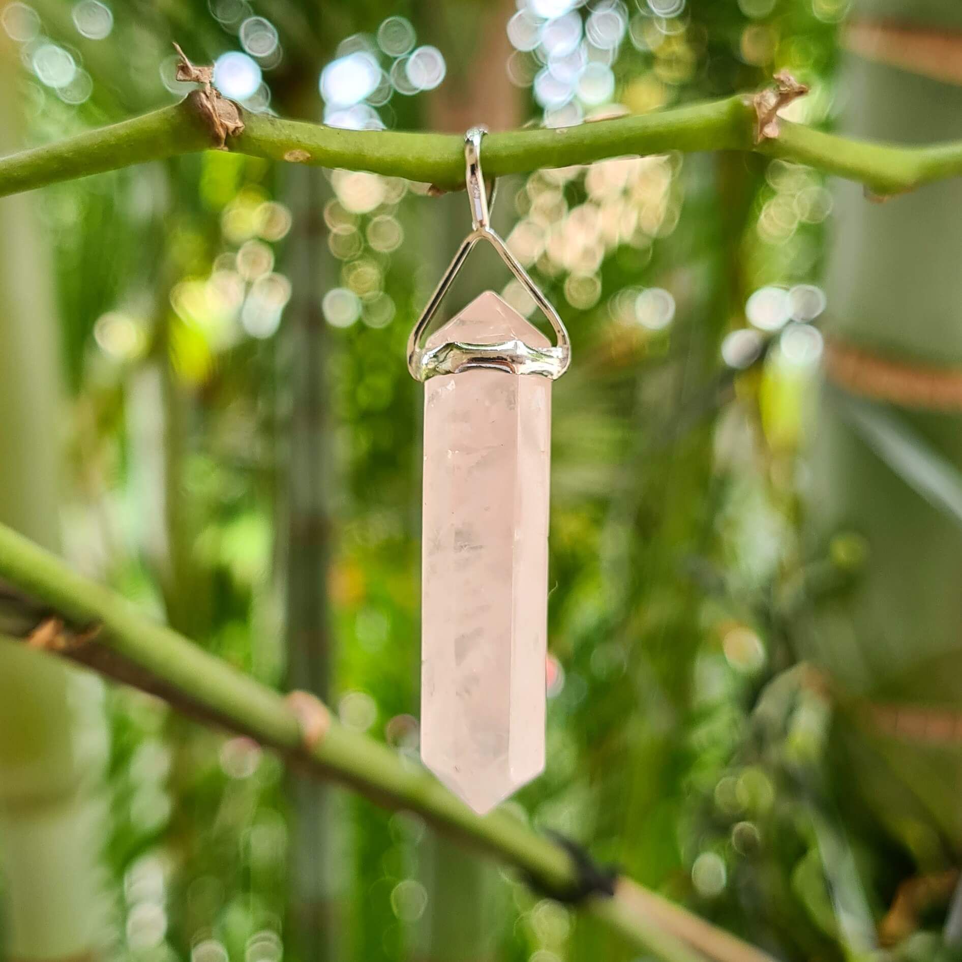 Pingente em Prata 925 e Quartzo Rosa de Ponta