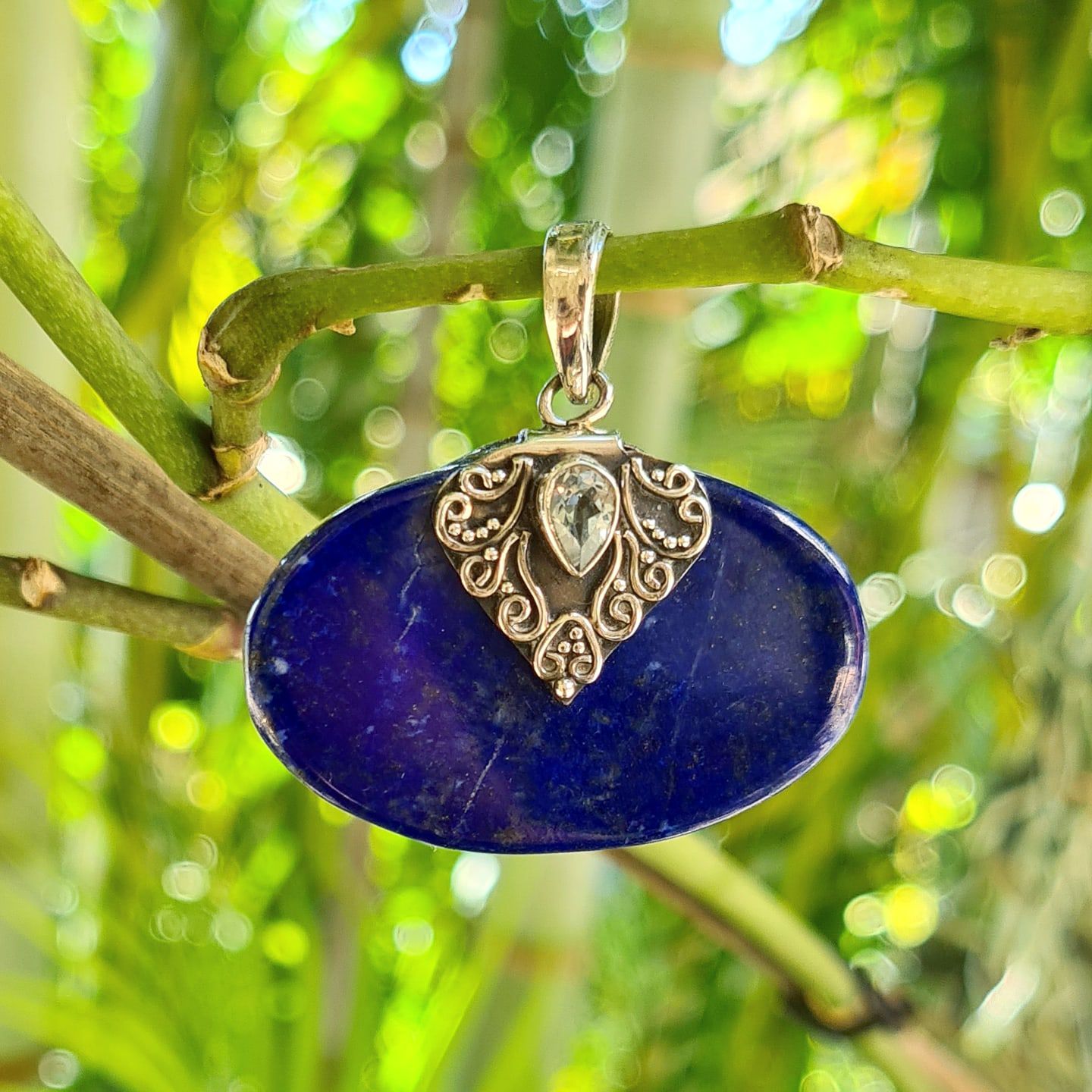 Pingente em Prata 925, Lápis Lazuli e Topázio Azul