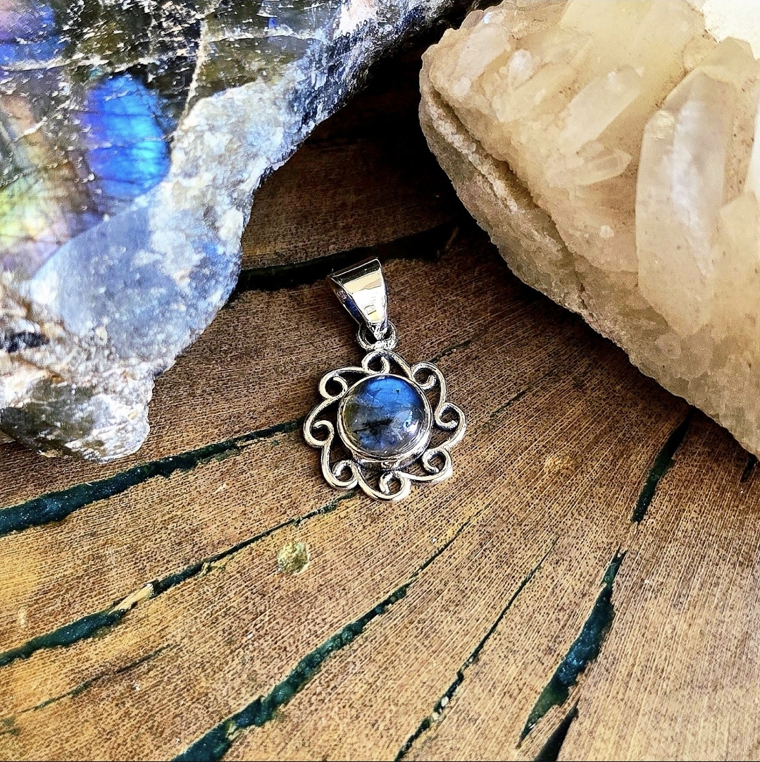 Pingente Flor em Prata 925 e Labradorita