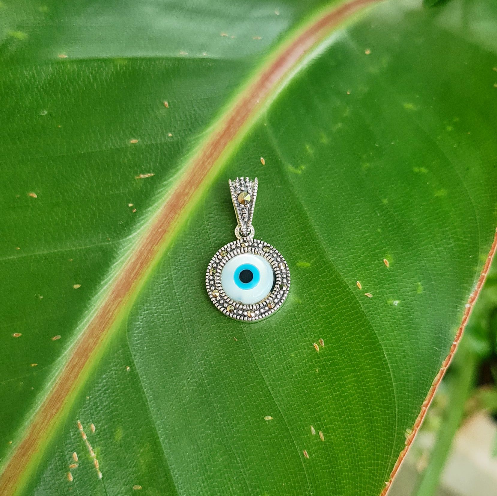 Pingente Olho Grego em Prata 925, Madrepérola e Marcassita