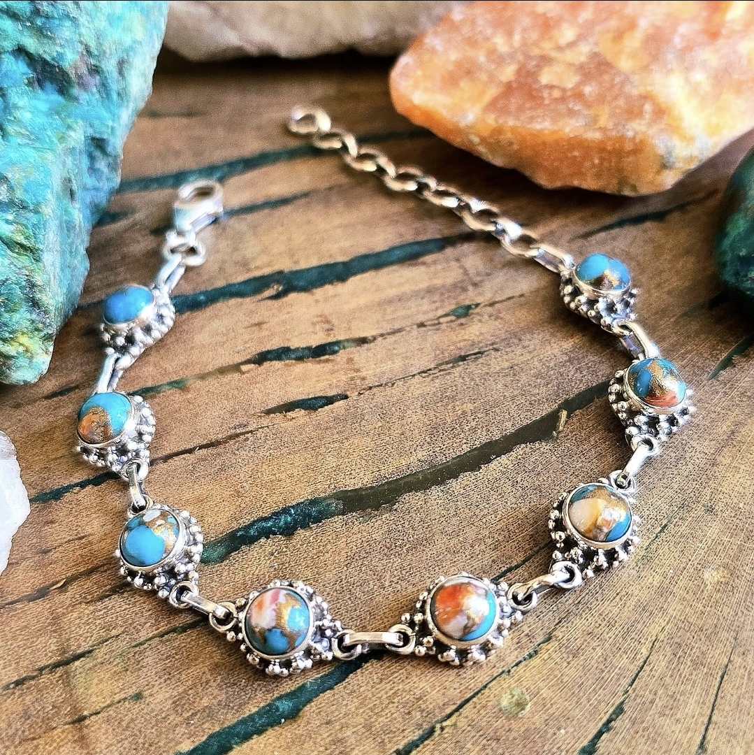 Pulseira Boho em Prata 925 e Turquesa Ostra